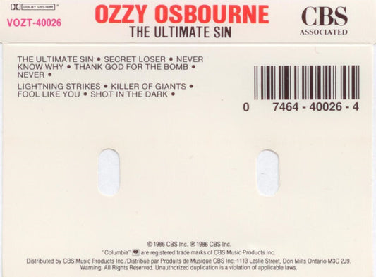 Ozzy Osbourne – The Ultimate Sin (Used cassette)